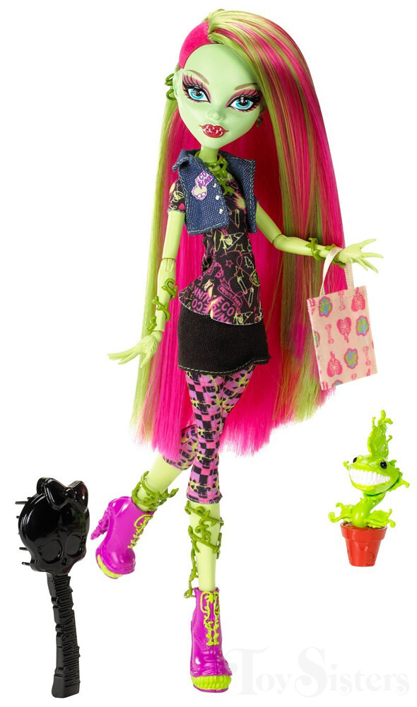 Signature Venus McFlytrap was released in 2012. She came with a bag, diary, stand, brush, and pet venus flytrap (Chewlian). She was made in Indonesia. To see other versions of the Monster High character Venus McFlytrap, click here.