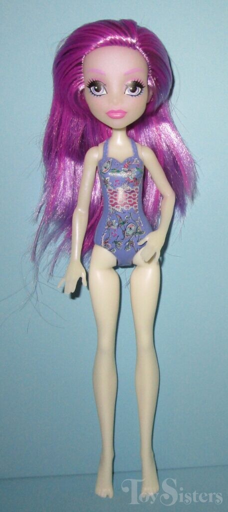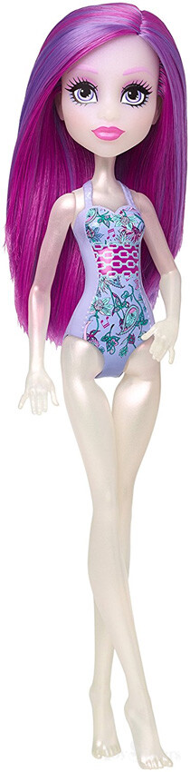 Swim Ari Hauntington was released in 2018. She is not articulated at her elbows or knees. To see the other releases of the Monster High character Ari Hauntingon, click here. To see other G2 Monster High dolls, click here.