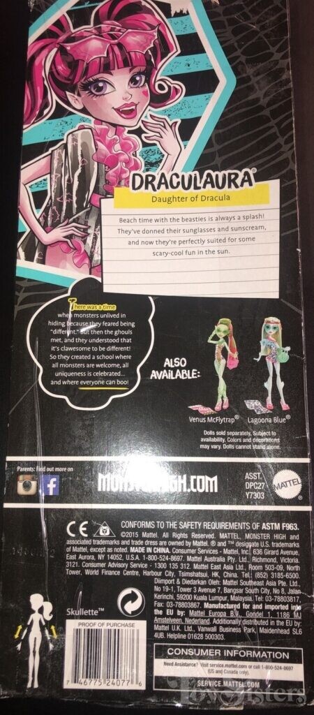 In 2015, this version of Draculaura was released again in two different box styles. The line was now called Beach Beasties.