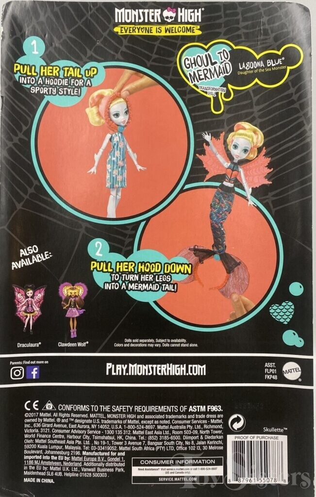 Transforming Ghouls Lagoona Blue was released in 2018. Her top is molded on. To see other versions of the Monster High character Lagoona Blue, click here. To see other G2 Monster High dolls, click here.