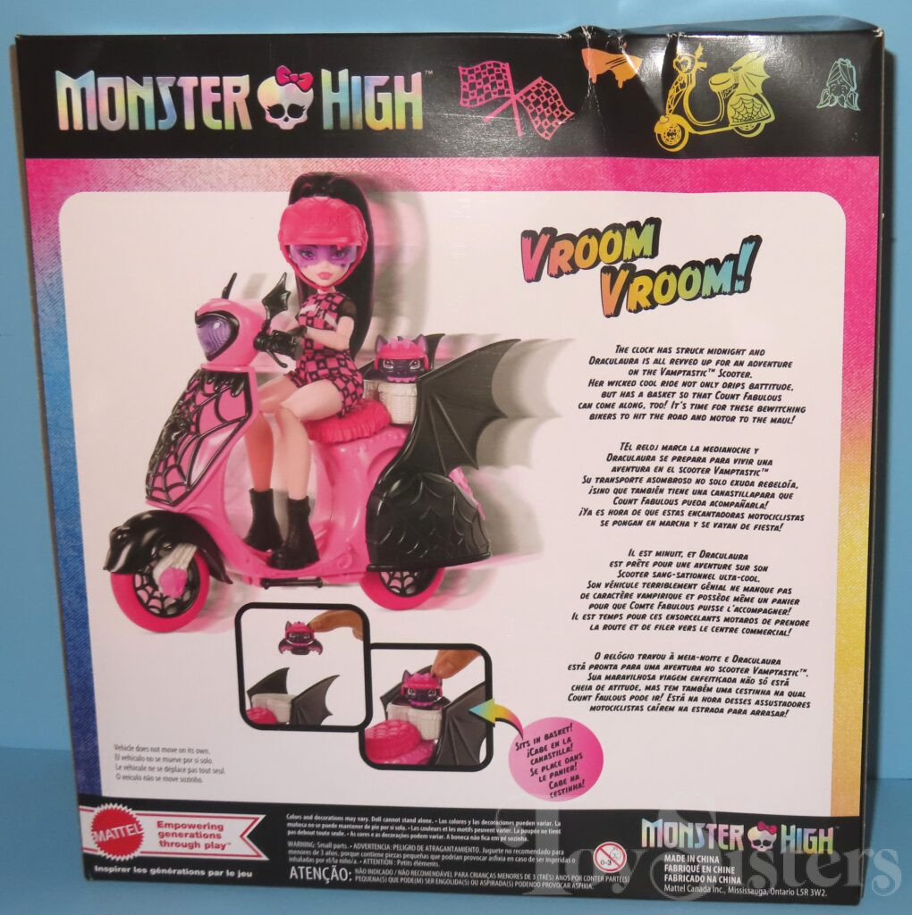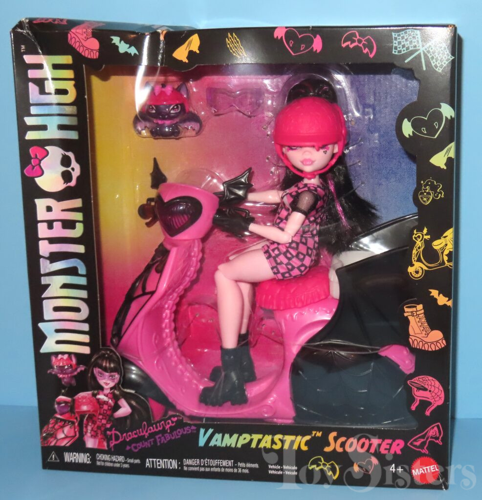 G3 Vamptastic Scooter Draculaura was released in 2025. She came with a scooter, helmet, and pet. To see the other releases of the Monster High character Draculaura, click here.