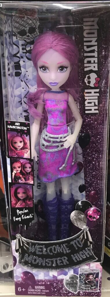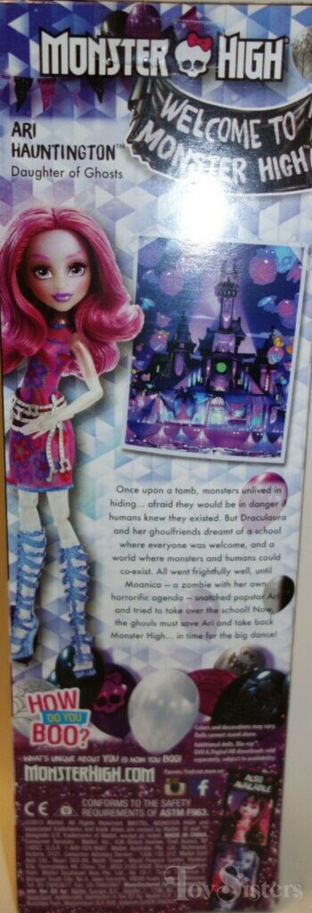 Welcome To Monster High Ari Hauntington was released in 2016. She is not articulated at her elbows or wrists. A Deluxe Version of this doll was also released. To see the other releases of the Monster High character Ari Hauntington, click here. To see other G2 Monster High dolls, click here.