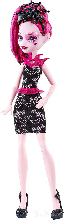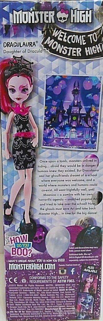 Welcome To Monster High Draculaura was released in 2016. She is not articulated at her elbows or wrists. There is a Deluxe Version of this doll with more details. To see the other releases of the Monster High character Draculaura, click here. To see other G2 Monster High dolls, click here.