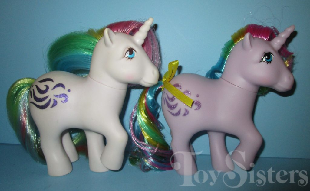 Basic Fun produced a scented version of 35th Anniversary Windy in 2018. This version has been observed to turn yellow/brown. A non-scented version of Windy was released shortly after the scented version. Basic Fun released a multi-pack of five of the rainbow ponies as well. The multi-pack came scented or non-scented. The multi-pack ponies have no differences from their single releases. To return to the 35th anniversary Retro My Little Pony menu, click here. To return to the Retro My Little Pony menu, click here.