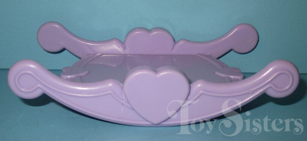 Baby Moondancer was released in year 3 and is a Baby Pony. She came with a purple rocker, a purple and white bib, a diaper and box, a bottle with a purple trim, a duck pull toy, and a pink necklace. In Germany, Baby Moondancer did not have glitter on her symbol. She was later released as a mail order. That version of Baby Moondancer is pearly and is either made in China or made in Hong Kong. She is in the Baby Glory Pose. To view other ponies by year/series, click here.