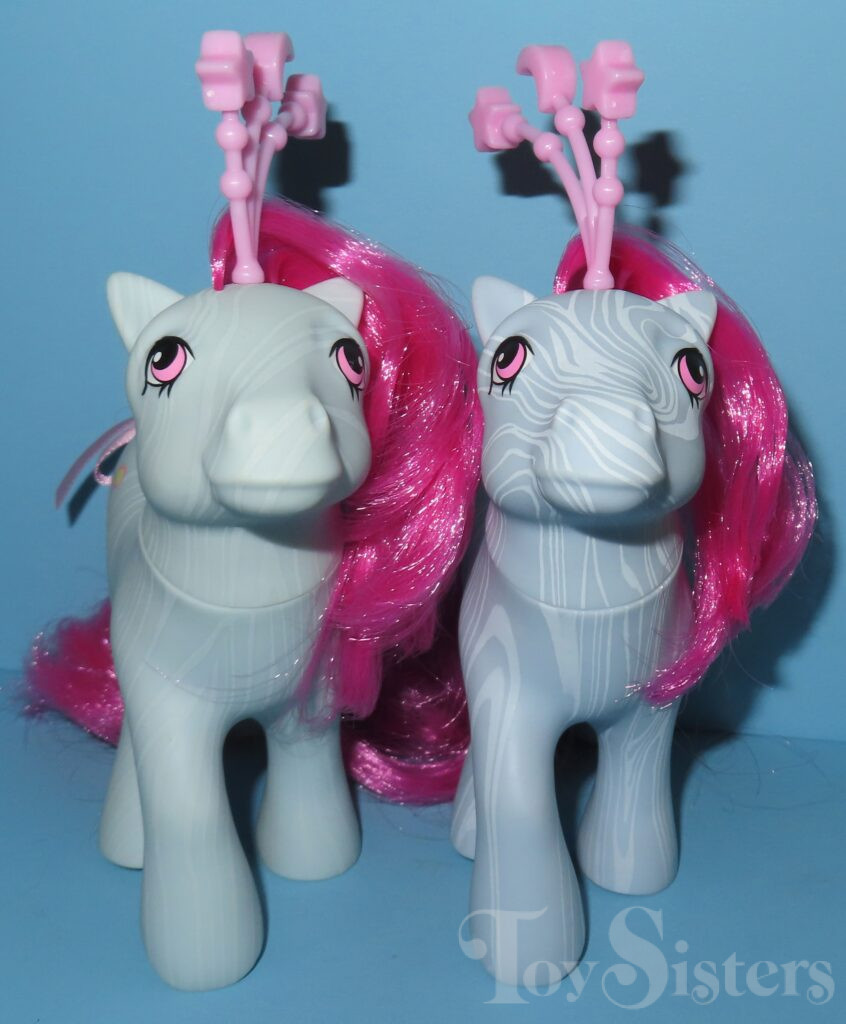 In 2023, Basic Fun released the Celestial Ponies. These are based on G1 Pony art from an unproduced series. Later in the pony’s run the color was changed to a brighter blue. To return to the Basic Fun Retro My Little Pony menu, click here. To return to the Retro My Little Pony menu, click here.