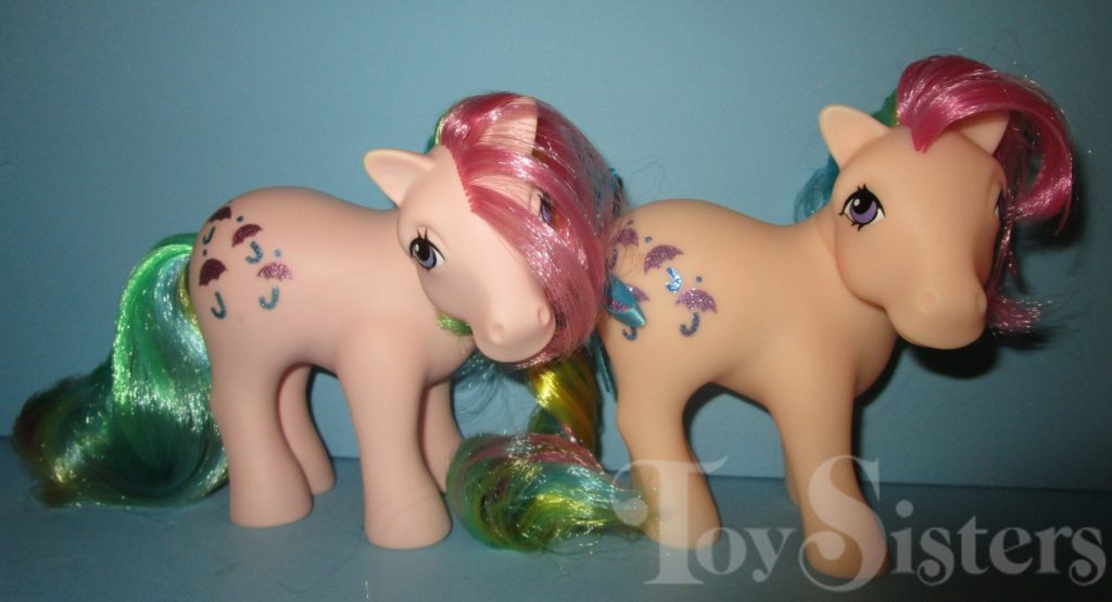 Basic Fun produced a scented version of 35th Anniversary Parasol in 2018. This version has been observed to turn brown. A non-scented version of Parasol was released shortly after the scented version. Basic Fun also released a multi-pack of five of the rainbow ponies. The multi-pack came scented or non-scented. The multi-pack ponies have no differences from their single releases. To return to the 35th anniversary Retro My Little Pony menu, click here. To return to the Retro My Little Pony menu, click here.
