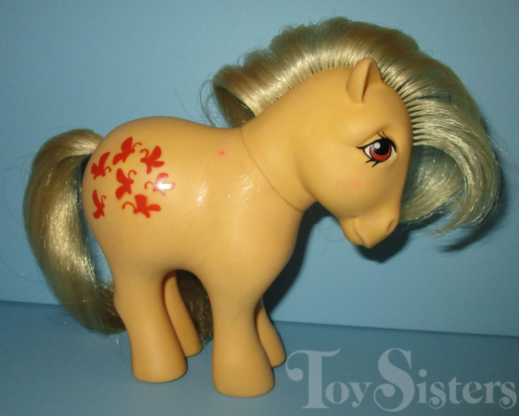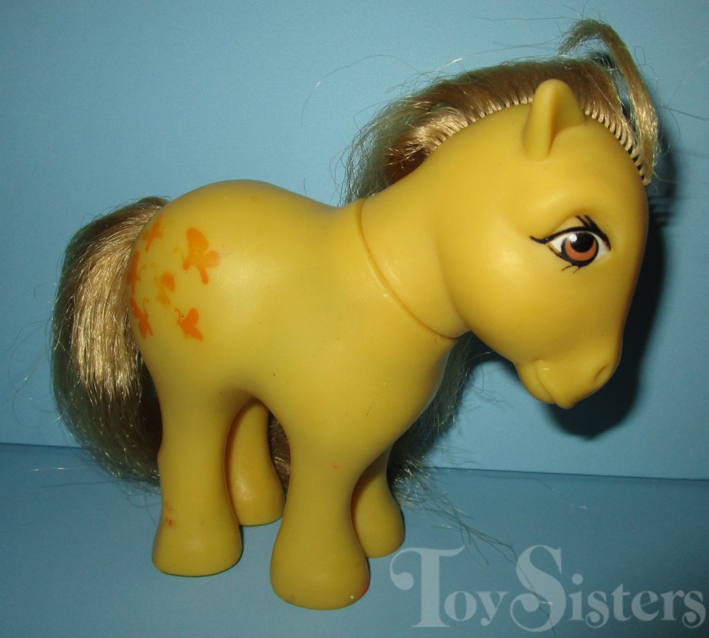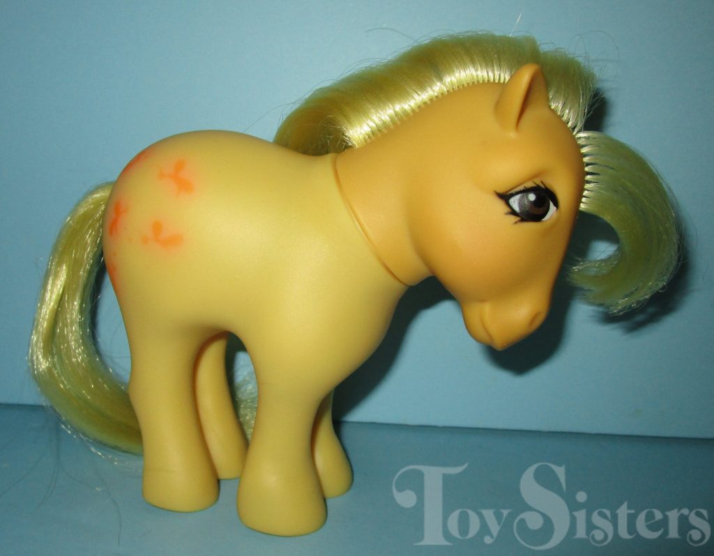 Butterscotch was first released in 1982 with Flat Feet. She was released again the next year with concave feet. The concave version was also released as a mail order. She came with a pink comb and ribbon.