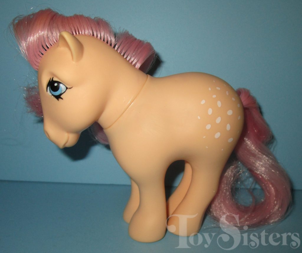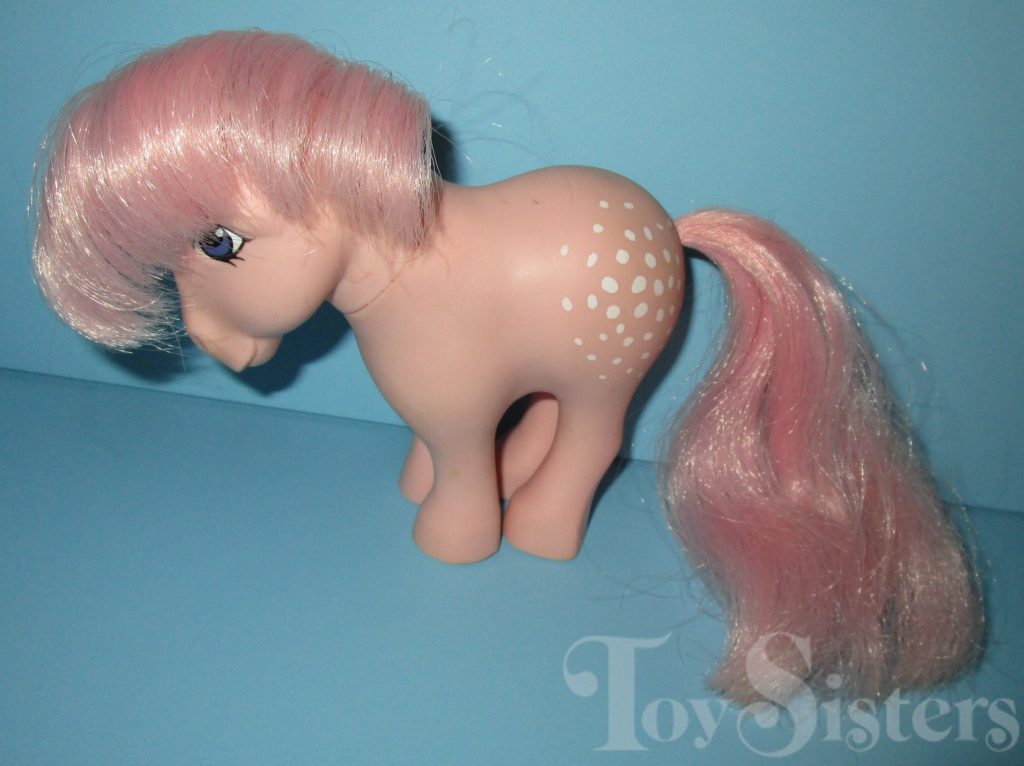 Cotton Candy was first released in 1982 with Flat Feet.  She was released again the next year with concave feet.  The concave version was also released as a mail order.  She came with a purple comb and ribbon.