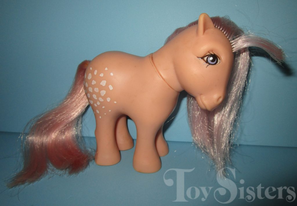Cotton Candy was first released in 1982 with Flat Feet. She was released again the next year with concave feet. The concave version was also released as a mail order. She came with a purple comb and ribbon.