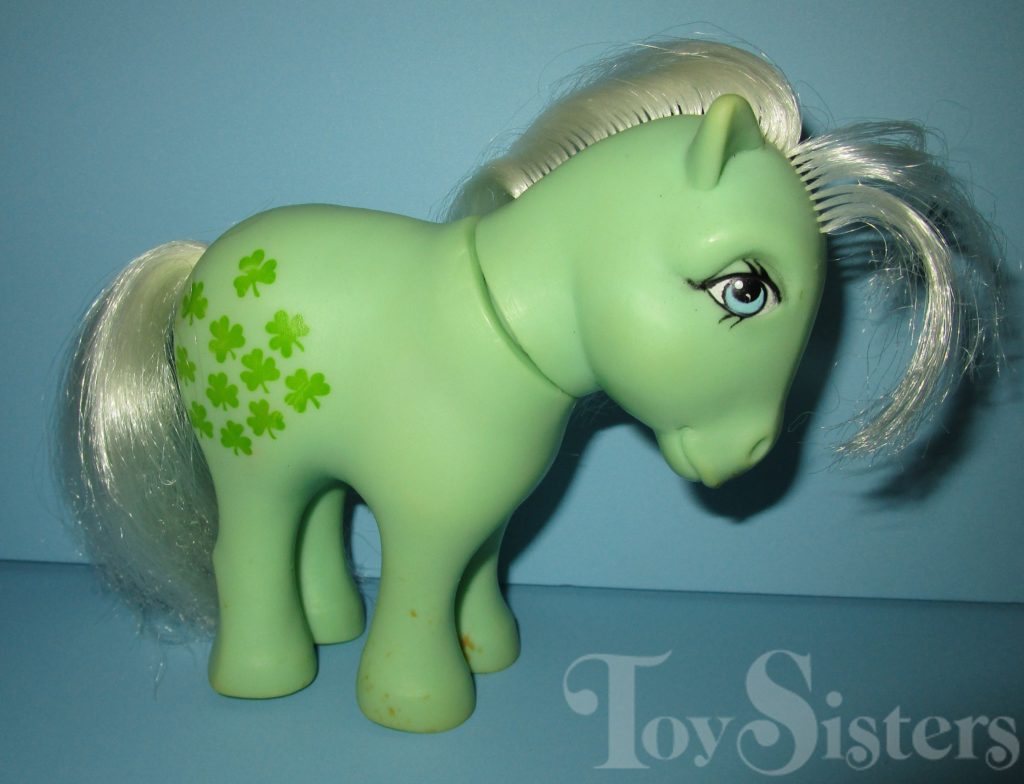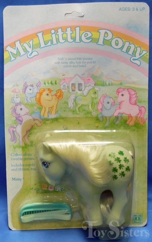 Minty was first released in 1982 with Flat Feet. She was released again the next year with concave feet. The concave version was also released as a mail order. She came with a blue comb and ribbon.