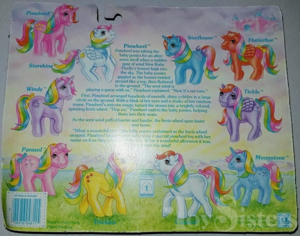 Basic Fun released reproduction ponies starting in 2017, for the 35th anniversary of My Little Pony. In 2019, Basic Fun released Pinwheel.