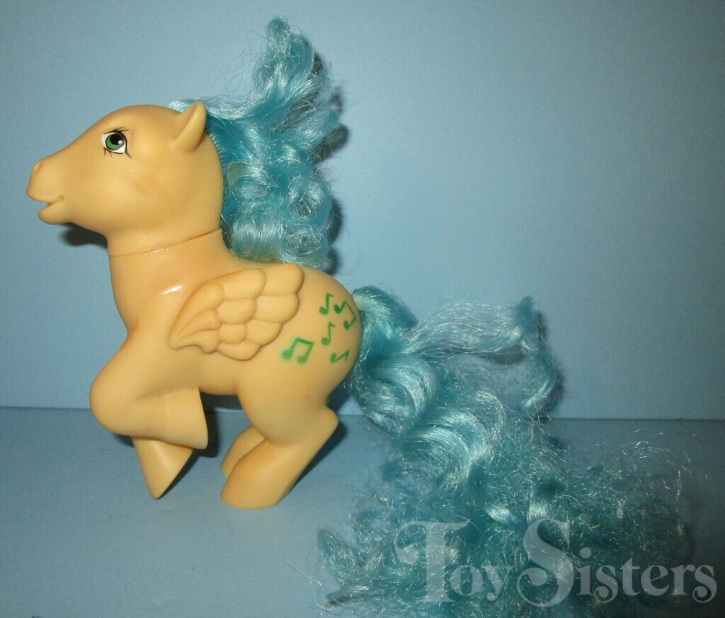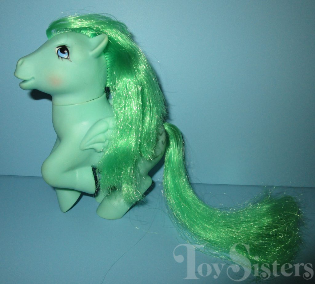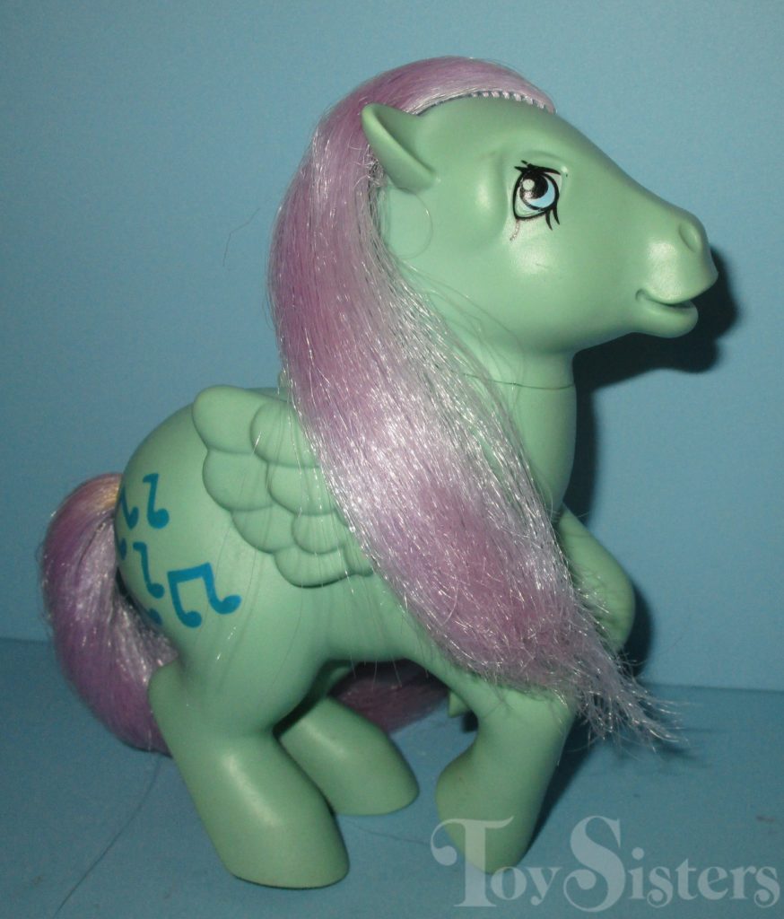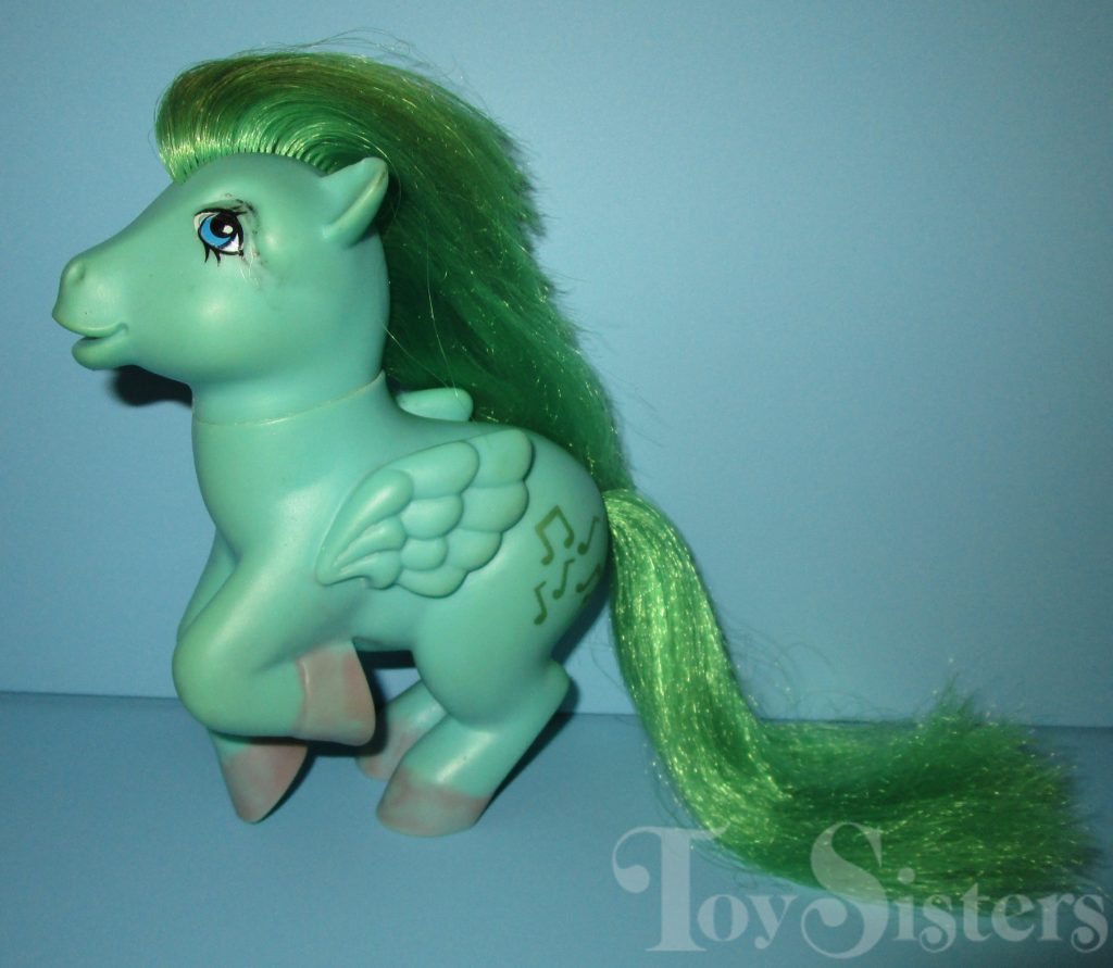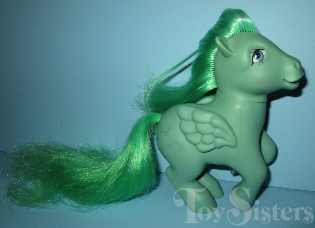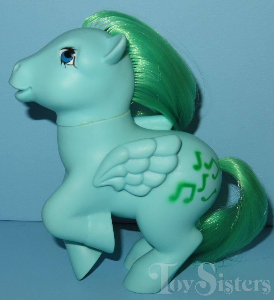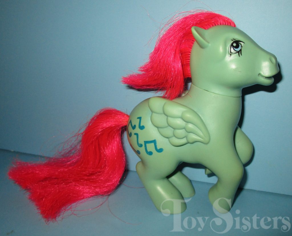 Medley was first released in 1983 and is a Pegasus Pony.  She has a lighter and darker body variation.  Her first release came with a pink star comb and ribbon.  In 1984 she was released again but this time she she came with a pink moon comb and yellow ribbon instead.  This version also had longer hair.  She is in the Firely Pose.  To view other ponies by year/series, click here.