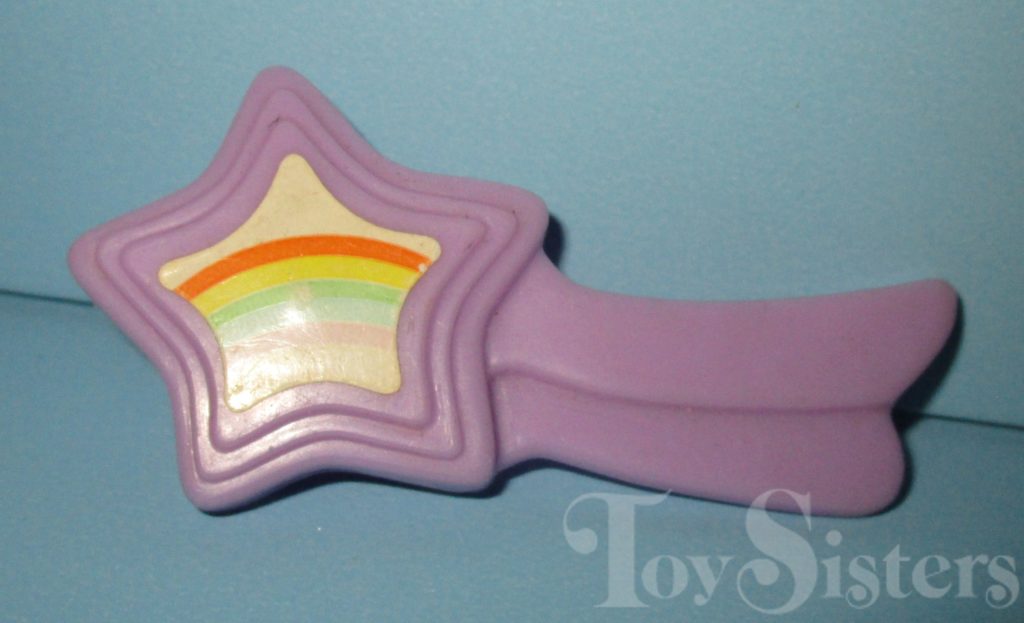 Moonstone was released in 1983 and is a Rainbow Pony. Her body color varies. She came with a purple star brush, purple comb and pink ribbon. In Germany, Moonstone was released without glitter on her symbol. She is in the Glory Pose. To view other ponies by year/series, click here.