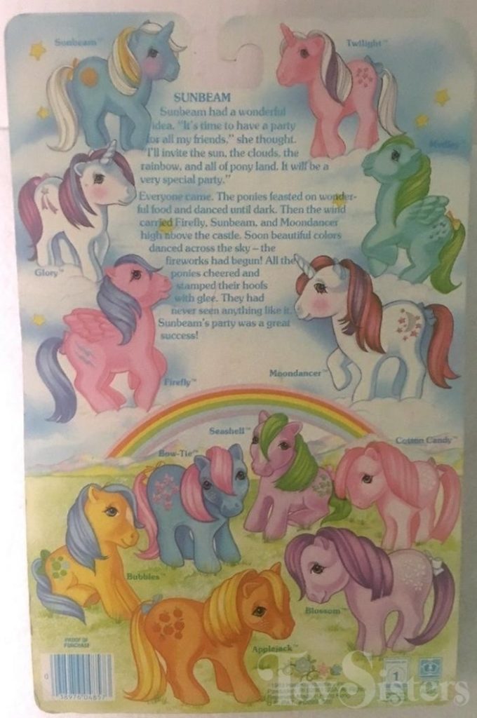 Basic Fun released reproduction ponies starting in 2017, for the 35th anniversary of My Little Pony. In 2018, Basic Fun released Sunbeam.