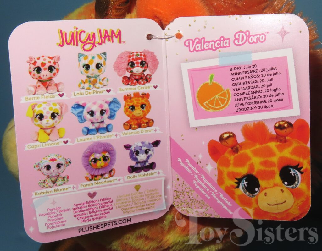 Valencia D’oro is a P.Lushes Pet by Gund. She is from the Juicy Jam line and her status is a Popular Edition Pet. To see other P.Lushes Pets, click here.