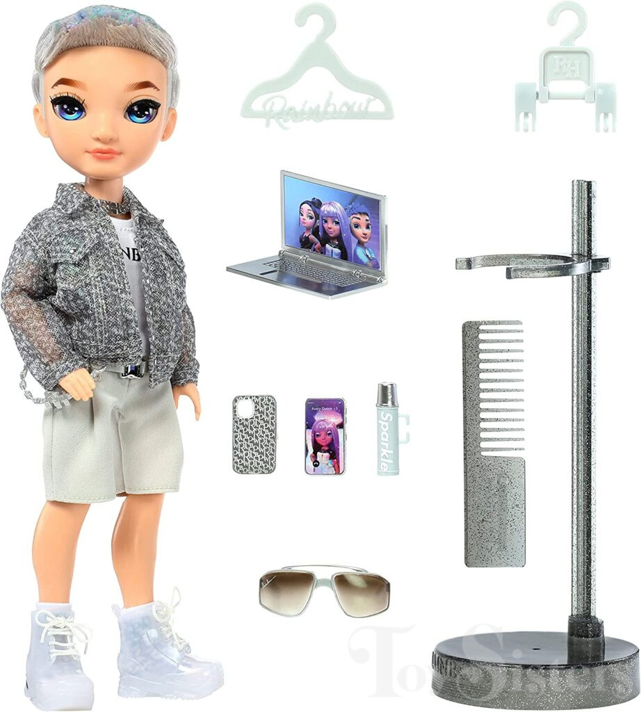 Aidan Russell was released in 2023 by MGA. He came with a computer, drink, sunglasses, phone, hangers, comb, and a stand. To return to the Rainbow High Series menu, click here. To return the the Rainbow High Character menu, click here.