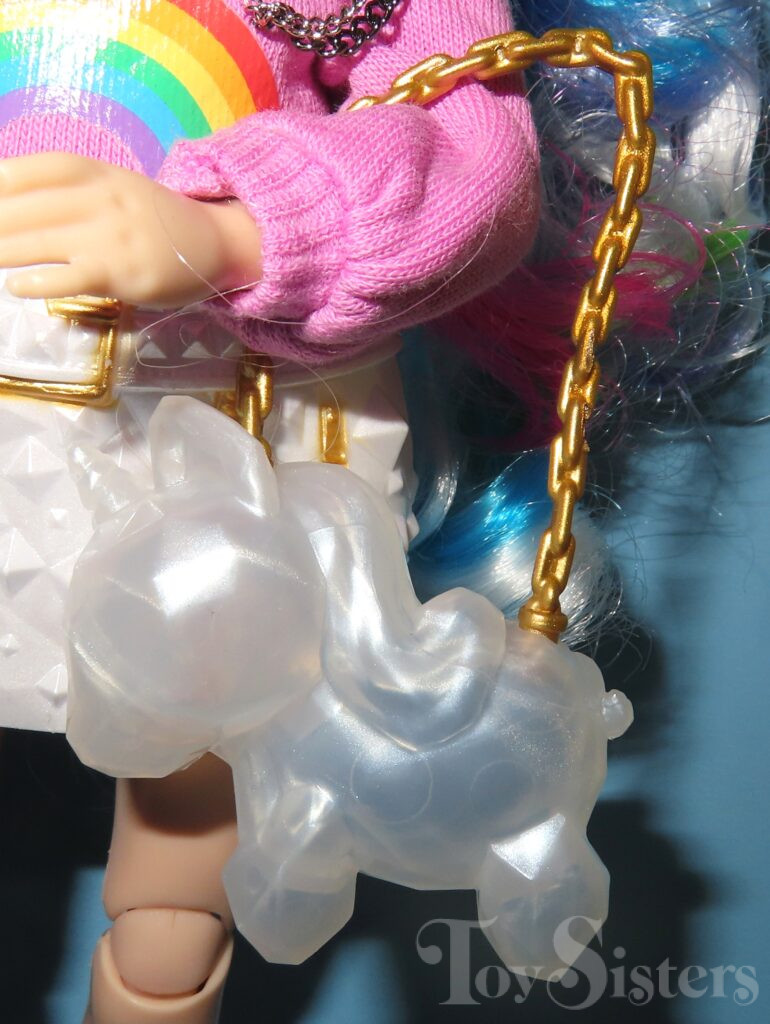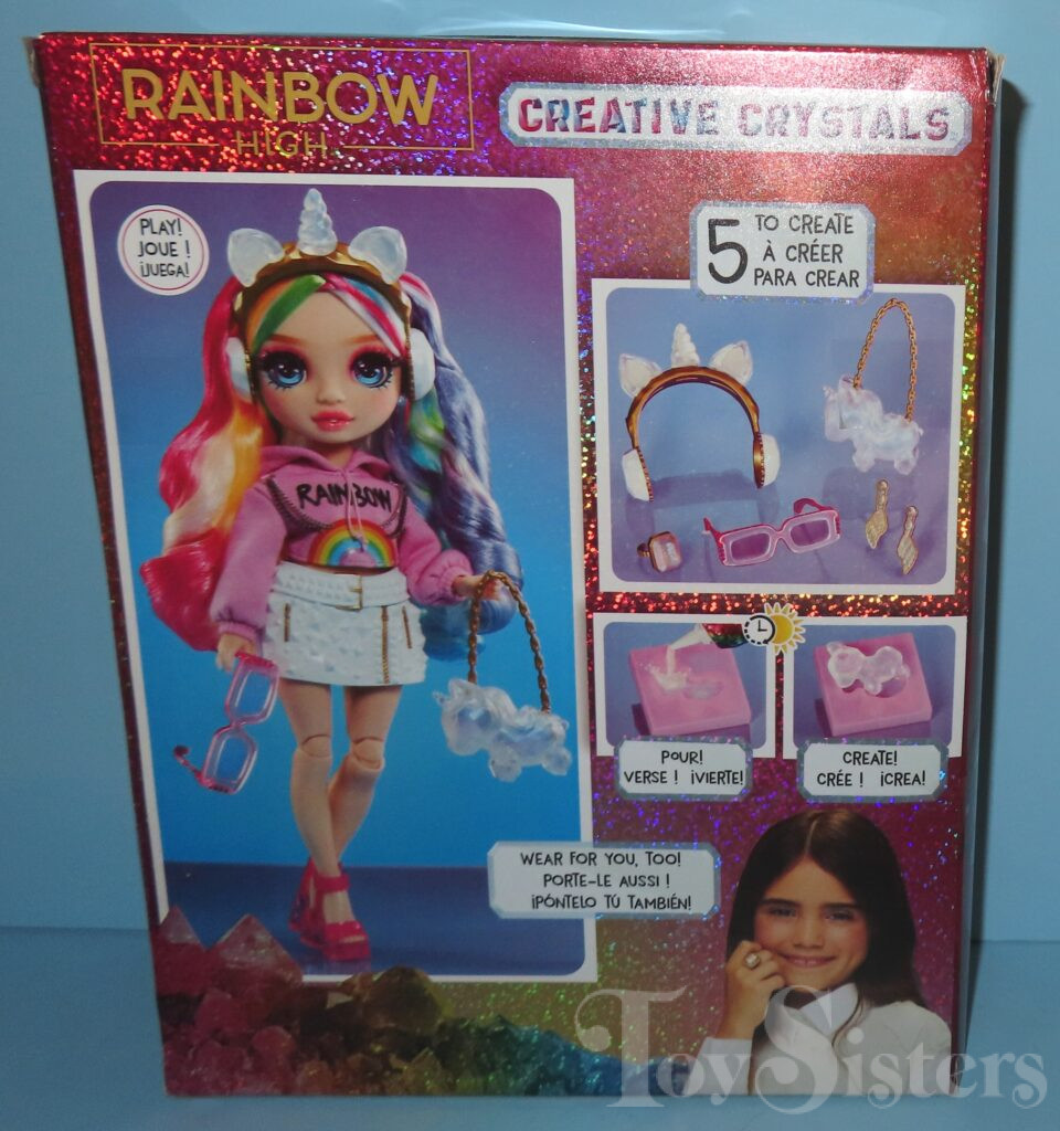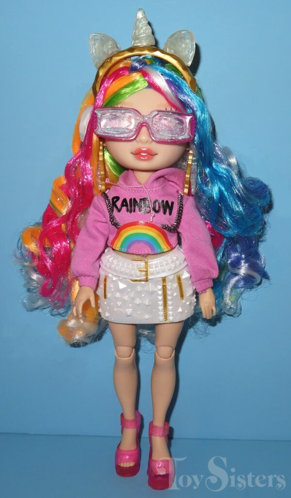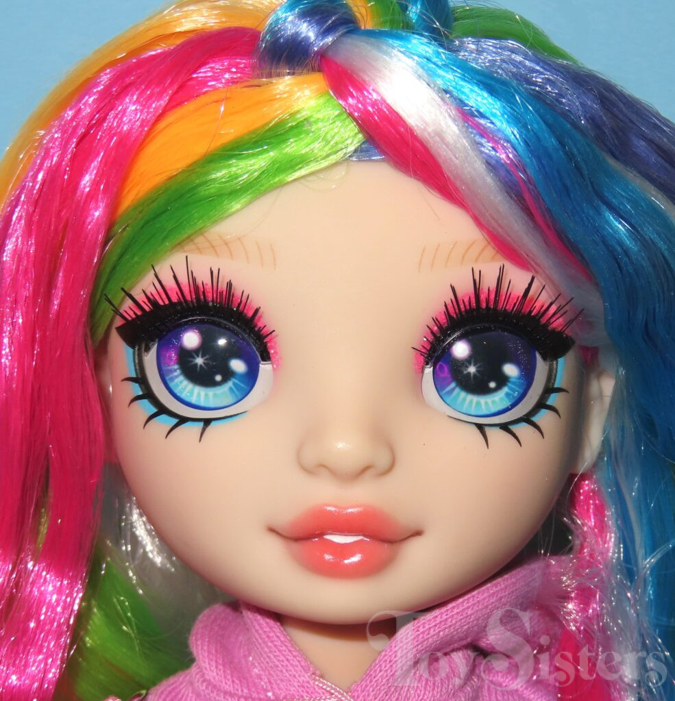 Creative Crystals Amaya Raine was released in 2025 by MGA. Her wrists are not articulated. We found the resin hard to use and don’t recommend these dolls for kids. To return to the Rainbow High menu, click here. To return the the Rainbow High Character menu, click here.