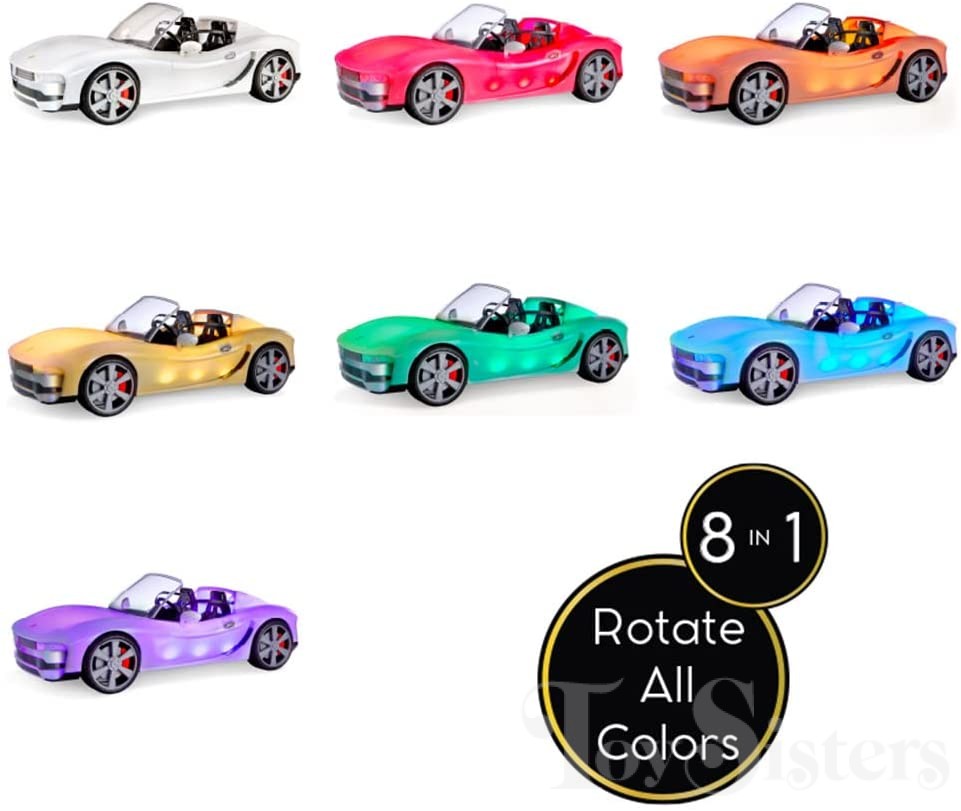 The Rainbow High Color Change Car was released in 2021 by MGA.  The car starts white and has 8 in 1 LED color changing lights allowing it to also appear red, orange, yellow, green, blue or purple.  To return to the Rainbow High menu, click here.