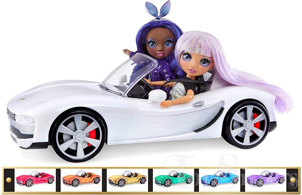 The Rainbow High Color Change Car was released in 2021 by MGA. The car starts white and has 8 in 1 LED color changing lights allowing it to also appear red, orange, yellow, green, blue or purple. To return to the Rainbow High menu, click here.