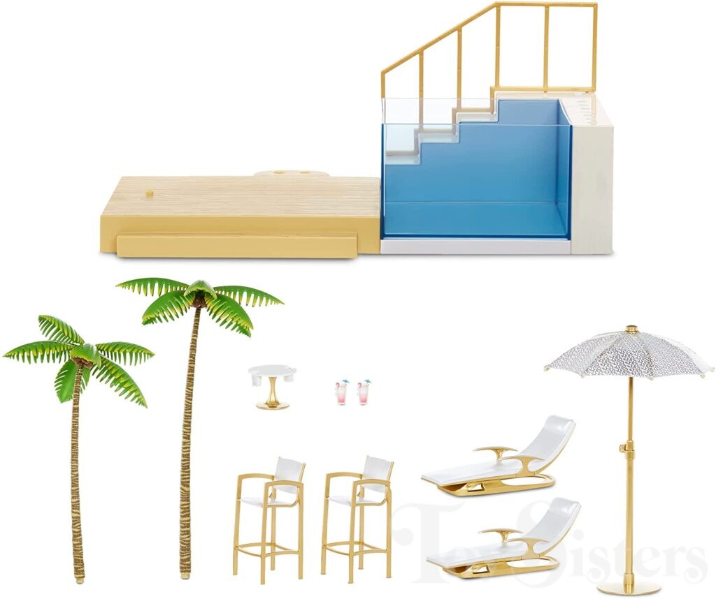 The Rainbow High Color Change Pool was released in 2022 by MGA. The pool starts clear and has 7 in 1 LED color changing lights allowing it to also appear red, orange, yellow, green, blue or purple. To return to the Rainbow High menu, click here.