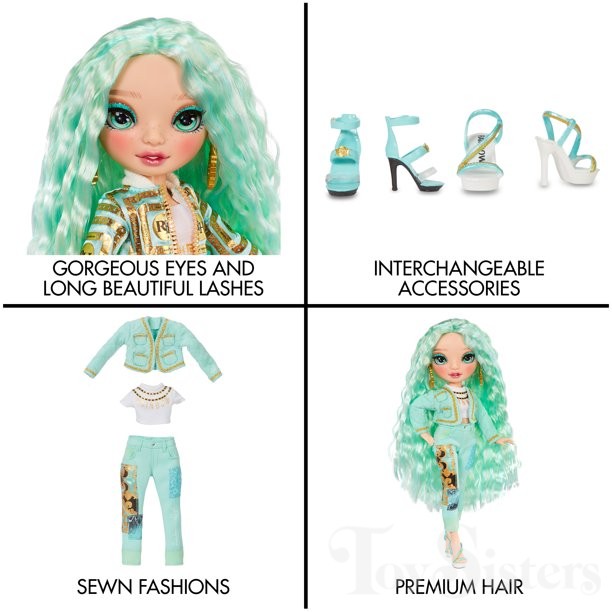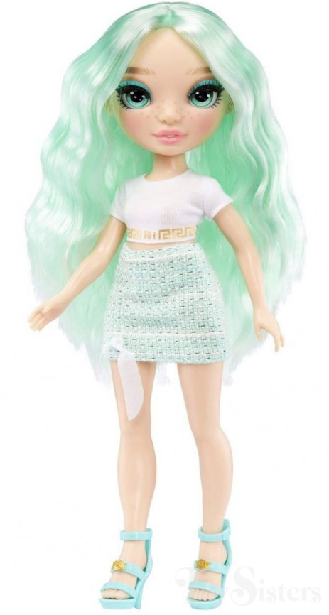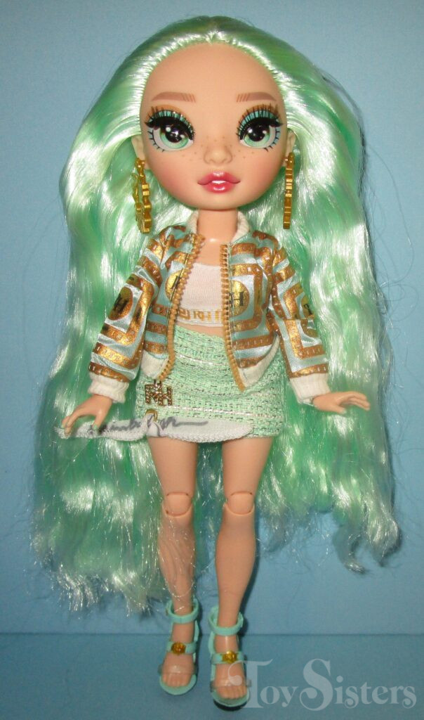 Daphne Minton was released in 2021 by MGA. She came with an extra fashion, comb, coat hangers, and a stand. In 2023, a Budget version of this doll was released with less detailed makeup, one shade of hair, and no articulation. To return to the Rainbow High Series menu, click here. To return the the Rainbow High Character menu, click here.