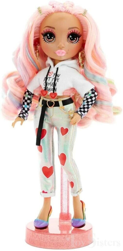 Kia Hart was released in 2021 by MGA. In the US she was sold exclusively at Target stores. She came with an extra fashion, comb, coat hangers, and a stand. To return to the Rainbow High Series menu, click here. To return the the Rainbow High Character menu, click here.
