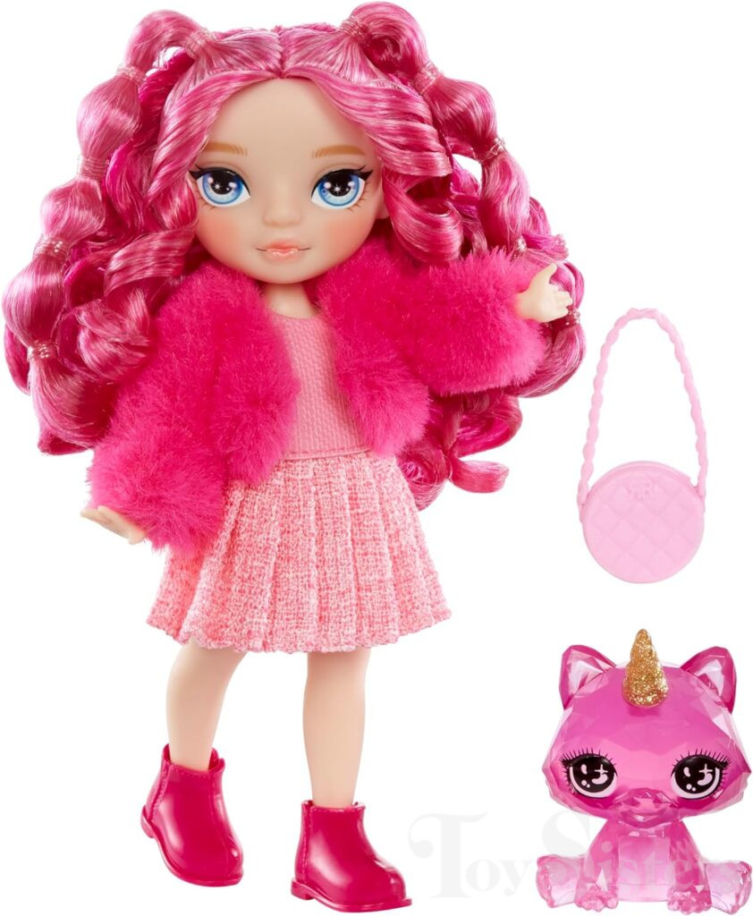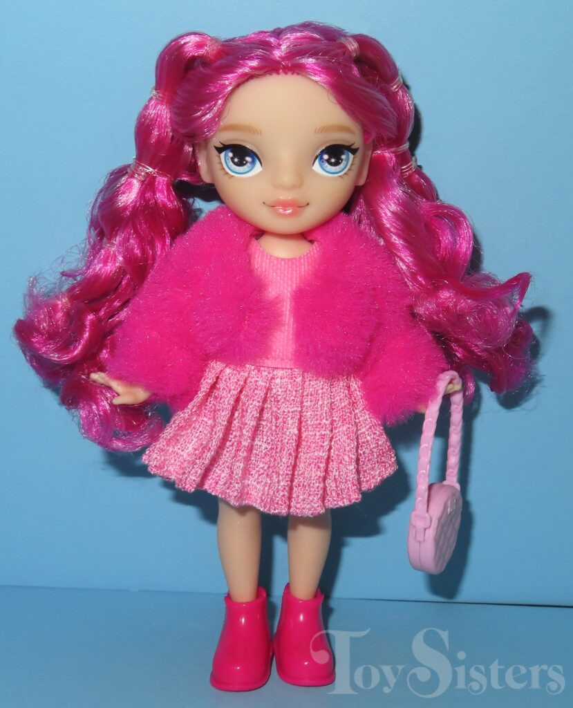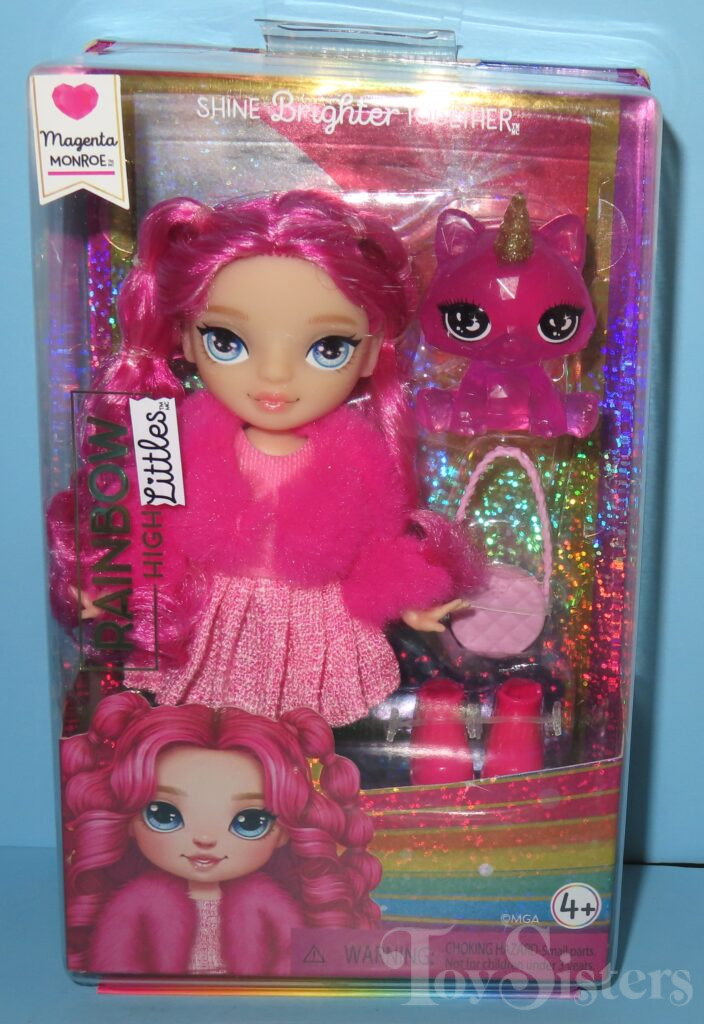 Littles Magenta Monroe was released in 2024 by MGA. Littles dolls are smaller than regular Rainbow High dolls. They are about 6″ tall. To return to the Rainbow High menu, click here. To return to the Rainbow High Character menu, click here.