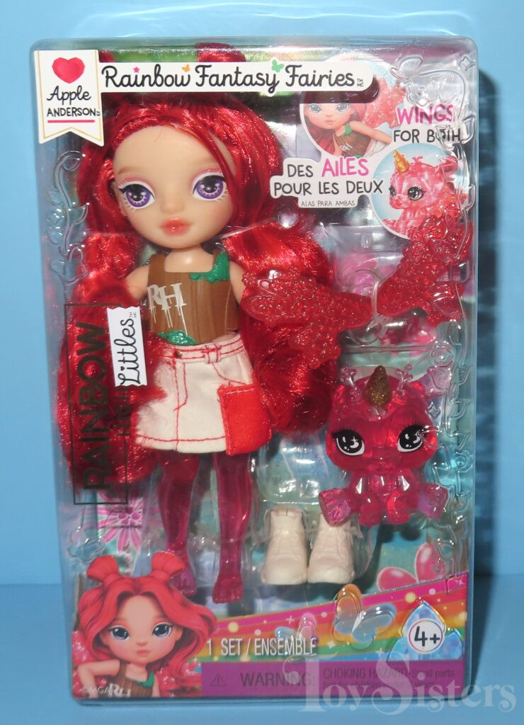 Littles Apple Anderson was released in 2025 by MGA. Littles dolls are smaller than regular Rainbow High dolls. They are about 6″ tall. To return to the Rainbow High menu, click here. To return to the Rainbow High Character menu, click here.