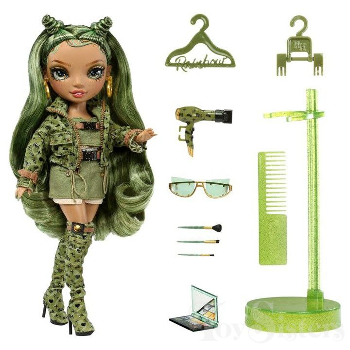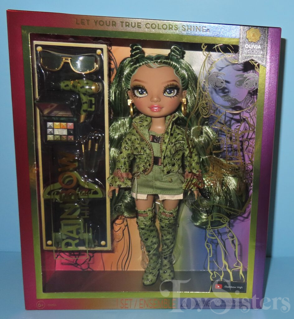 Olivia Woods was released in 2023 by MGA. She came with a hairdryer, sunglasses, phone, hangers, makeup, comb, and a stand. To return to the Rainbow High Series menu, click here. To return the the Rainbow High Character menu, click here.