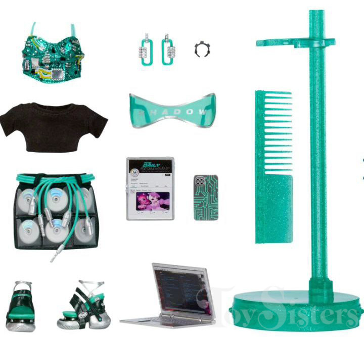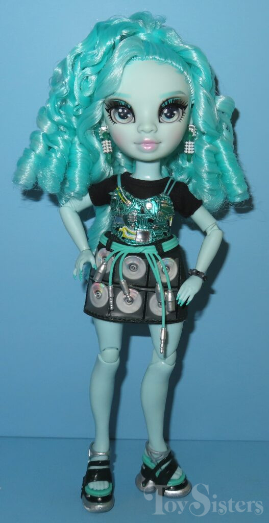 Berrie Skies was released in 2023 by MGA. She came with a comb, laptop, phone, tablet, sunglasses, and a stand. To return to the Rainbow High Series menu, click here. To return the the Rainbow High Character menu, click here.