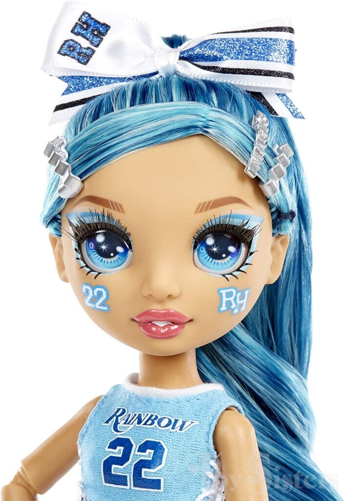Cheer Skylar Bradshaw was released in late 2020 by MGA. She came with pom poms and a comb. In 2021, she was released in a 2-pack with Poppy Rowan. To return to the Rainbow High Series menu, click here. To return the the Rainbow High Character menu, click here.