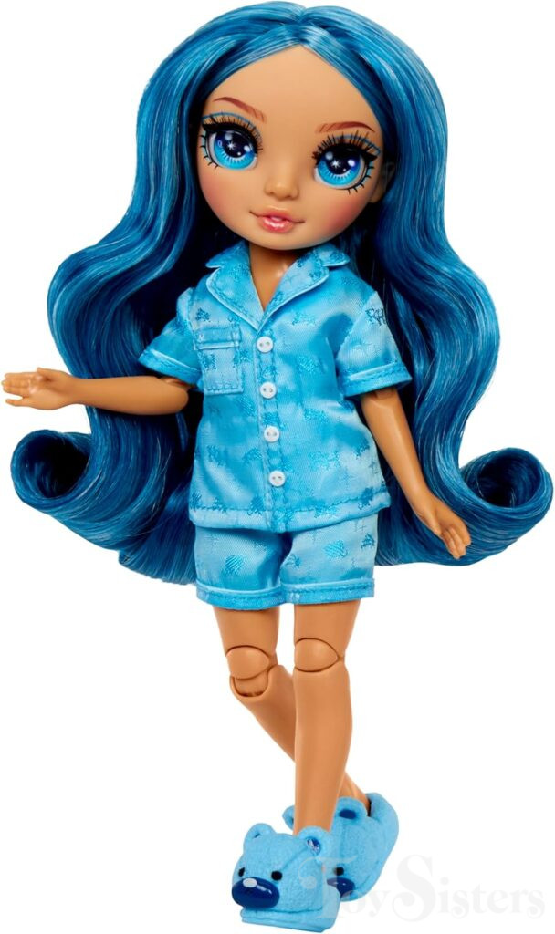 Junior High Skyler Bradshaw was released in 2024 by MGA. The Junior High dolls are smaller than regular Rainbow High dolls. She comes with a comb, nail files, nail polish, nail UV light, and case. To return to the Rainbow High menu, click here. To return the the Rainbow High Character menu, click here.