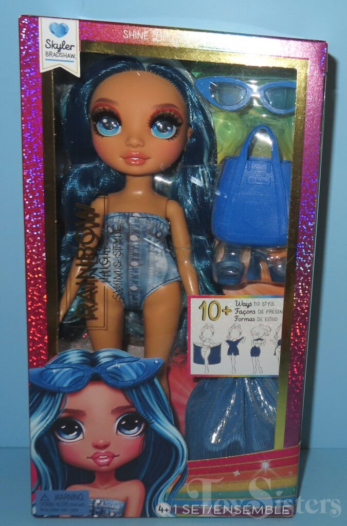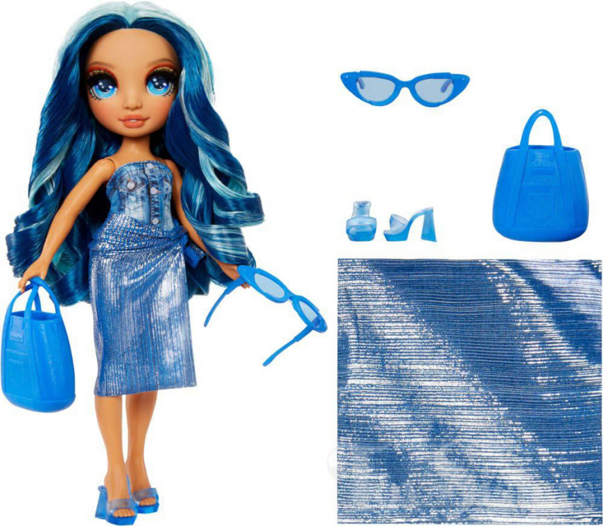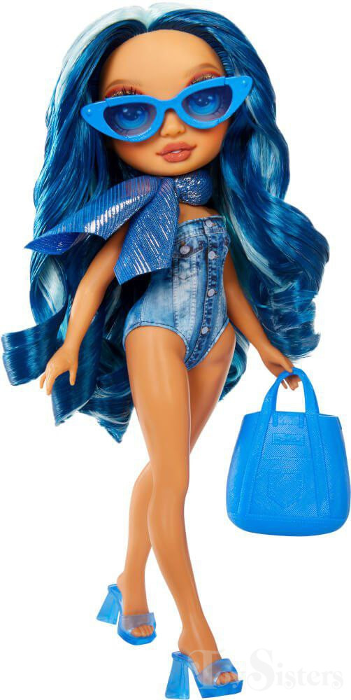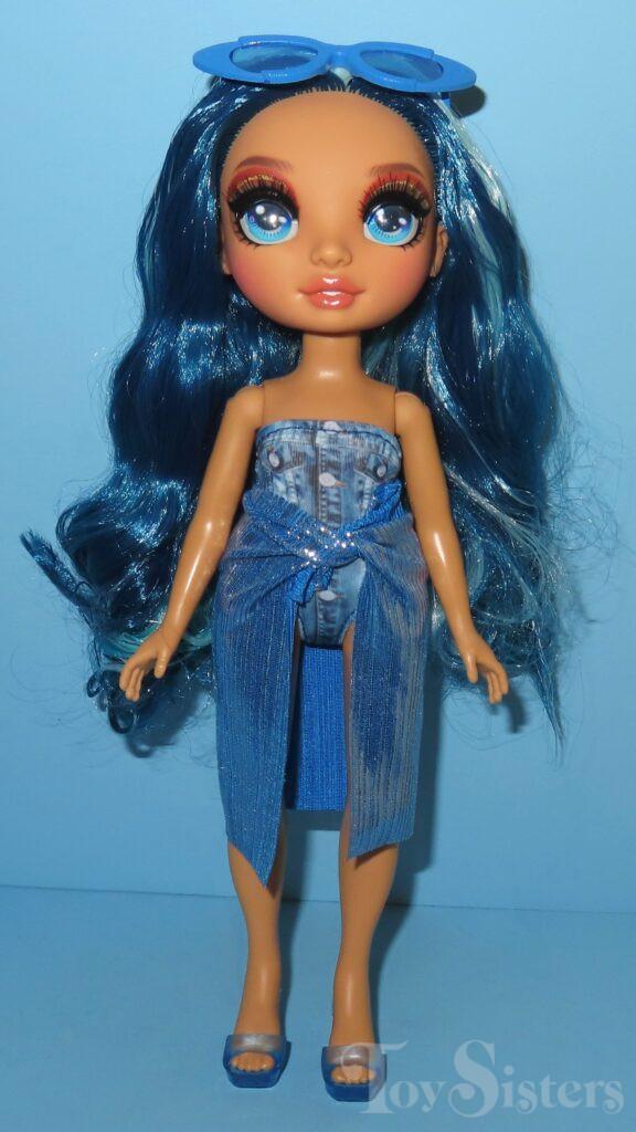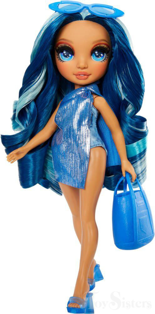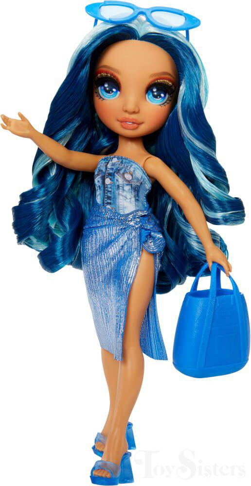 Skyler Bradshaw was released in 2024 by MGA. She came with sunglasses, a bag, and a wrap. To return to the Rainbow High Series menu, click here. To return the the Rainbow High Character menu, click here.