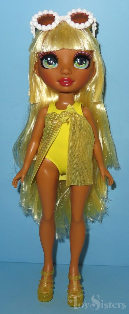 Sunny Madison was released in 2024 by MGA. She came with sunglasses, a bag, and a wrap. To return to the Rainbow High Series menu, click here. To return the the Rainbow High Character menu, click here.