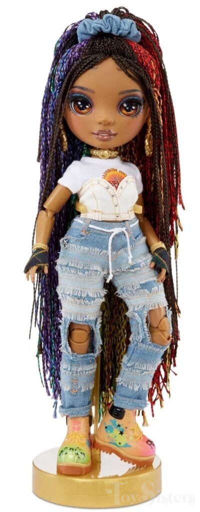 Vanessa Tempo was released in 2021 by MGA. She comes with an extra fashion, drum set, drumsticks, coat hangers, stand, and comb. In the US, she was sold exclusively at Target stores. To return to the Rainbow High Series menu, click here. To return the the Rainbow High Character menu, click here.