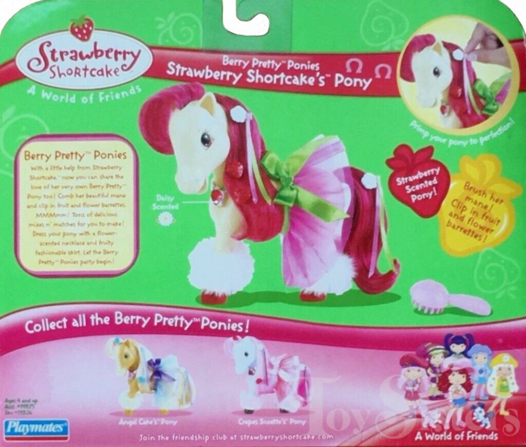 This pony is from the Berries to Blossoms line. She came packaged single or with Strawberry Shortcake. To return to the Playmates SSC menu, click here.