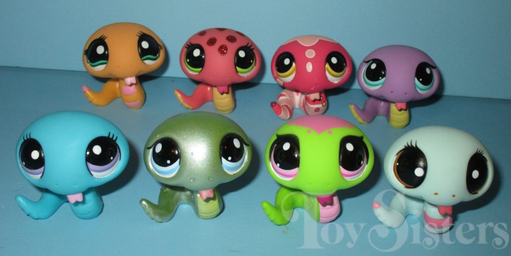 There are eight of these snake pets in the G2 Littlest Pet Shop line.  Click on each one to learn more about it!  To see other G2 Aquatic Pets & Reptile molds, click here