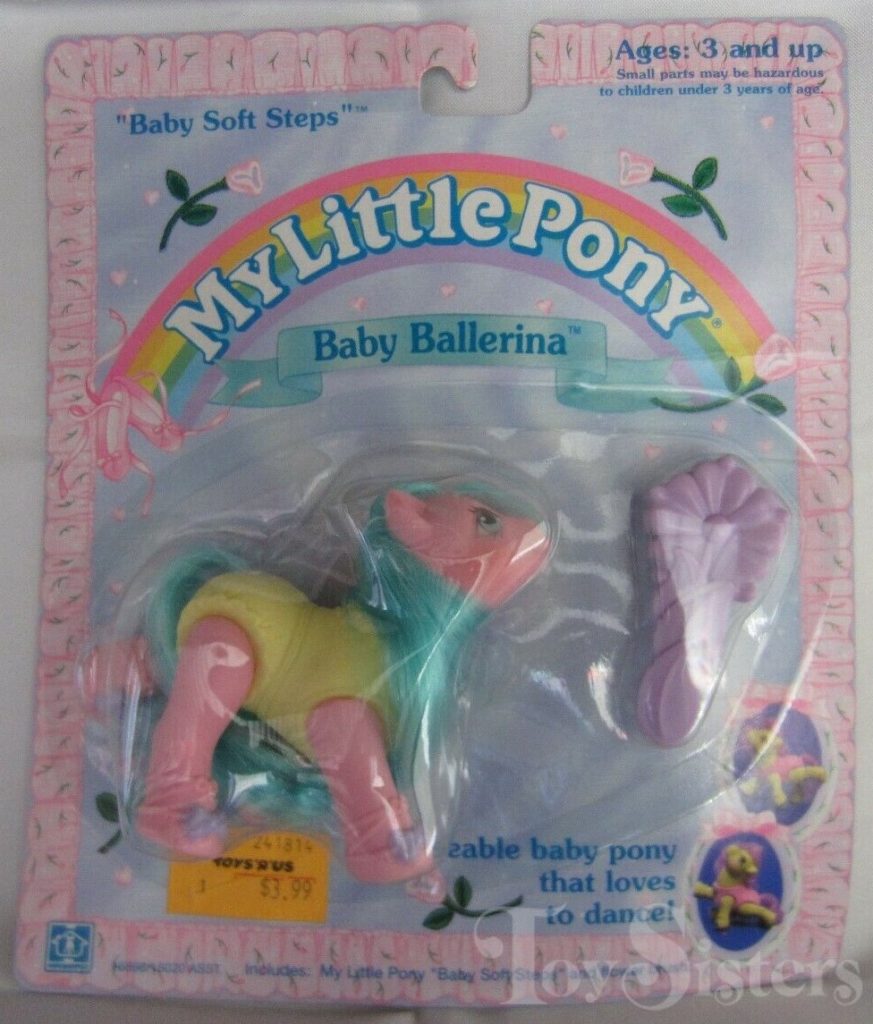 Baby Soft Steps was released in 1991 and is a Ballerina Baby. She came with a purple candy cane comb or a purple flower comb. She is in the Baby Sweetsteps Pose. To view other ponies by year/series, click here.