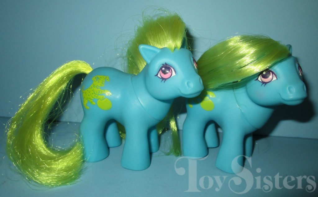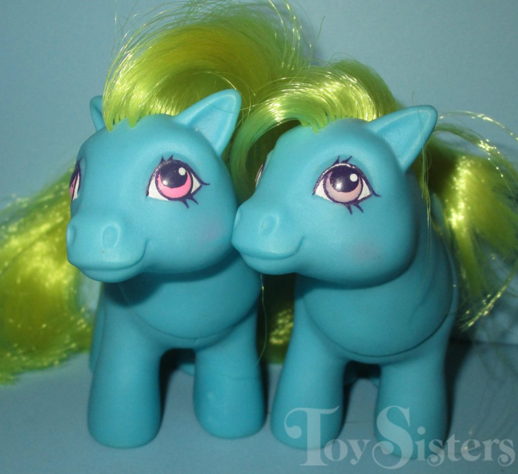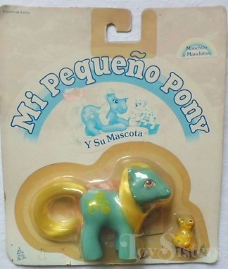 Baby Susie and Spot were released in Europe and are Best Friend Ponies. Baby Susie has variations in eye color. She is in the Baby Ember Pose. To view other ponies by year/series, click here. To return to the Li’l Litters menu, click here. To return to the main G1 Pony menu, click here.