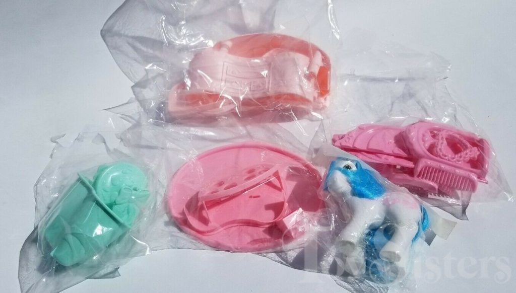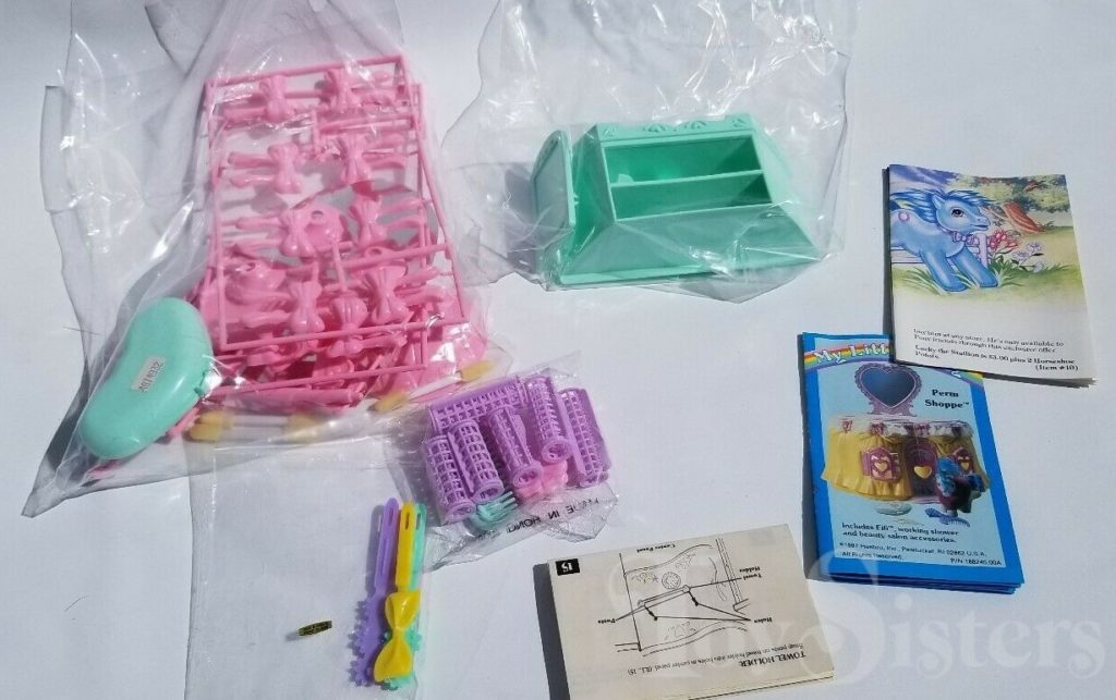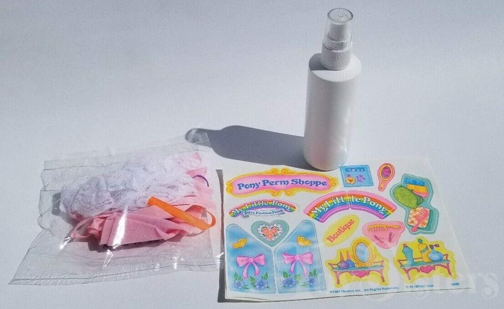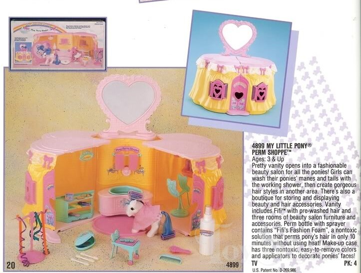 Fifi was released in 1987. She came in the Pony Perm Shoppe. In the US, she was made in Hong Kong, and in parts of Europe, she was made in China. There are hair color differences and symbol size differences between the two releases, and the Hong Kong version has a forelock. She is in the Crumpet Pose. To view other ponies by year/series, click here.