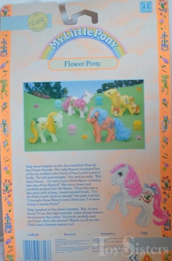 Tulip was released in Europe and is a Flower Pony. She came with a flower comb. She is in the Tootsie Pose. To view other ponies by year/series, click here.