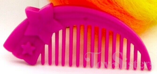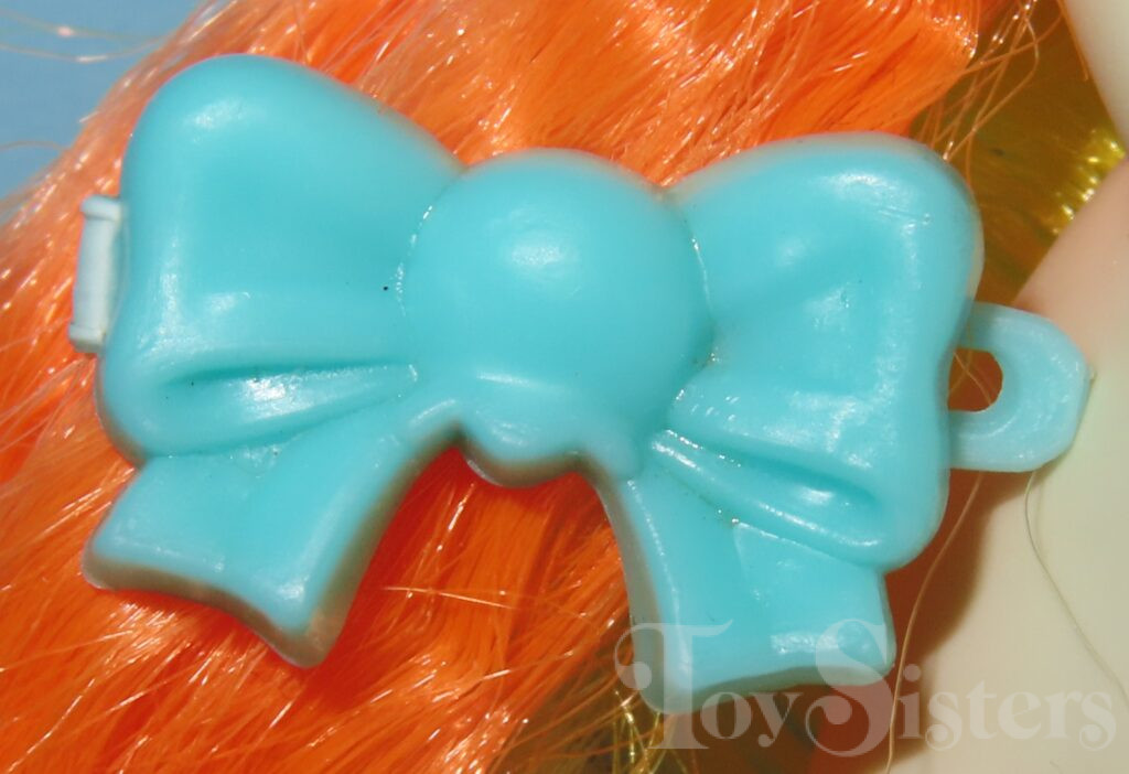 Highlights was released in Europe and is a Great Hair Pony. She came with a purple hair bow, a teal bow clip, and a pink star comb. She is in the Tootsie Pose. To view other ponies by year/series, click here.
