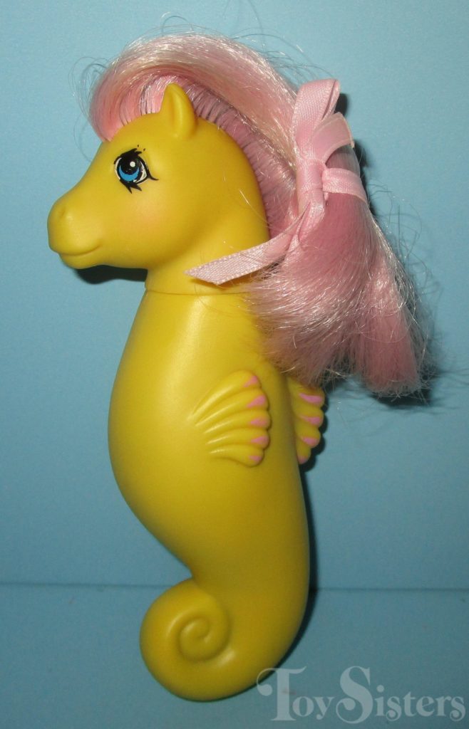 Sea Spray was released in Europe and is a Sea Pony. She came with a purple shell and a yellow shell comb and brush. She is in the Sealight Pose. To view other ponies by year/series, click here.