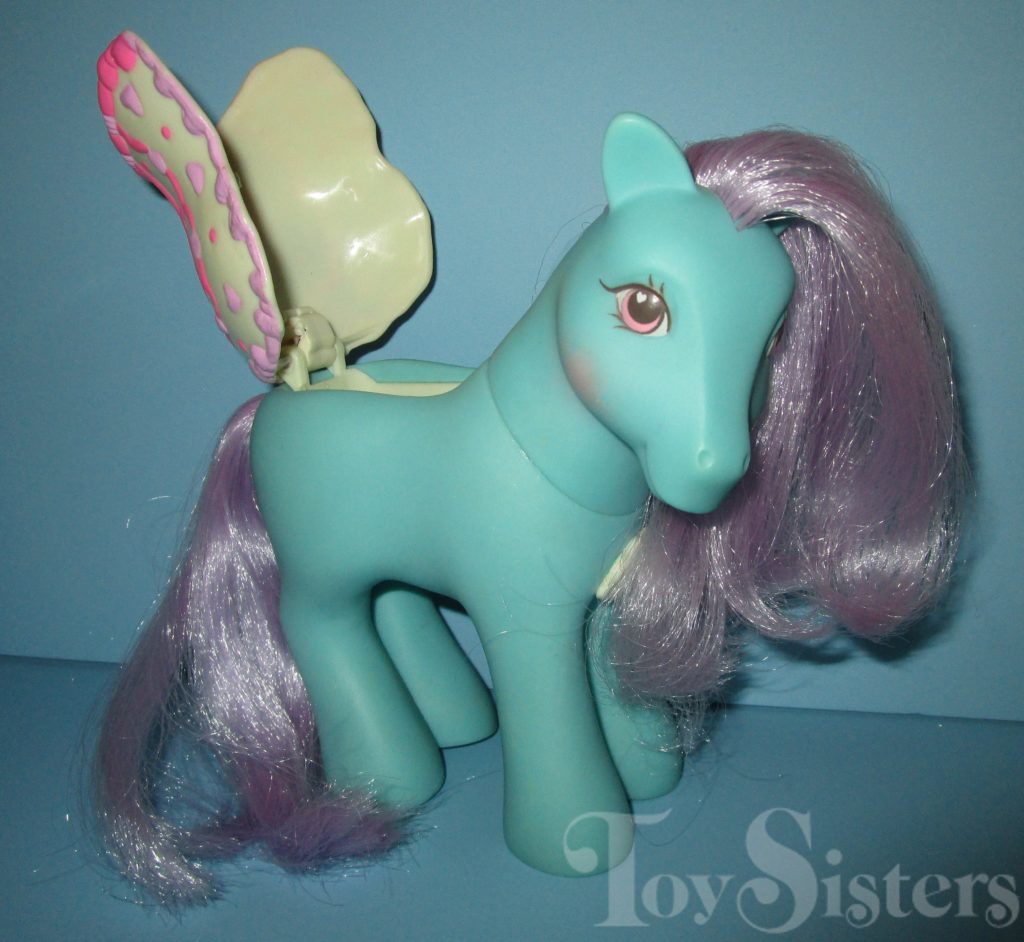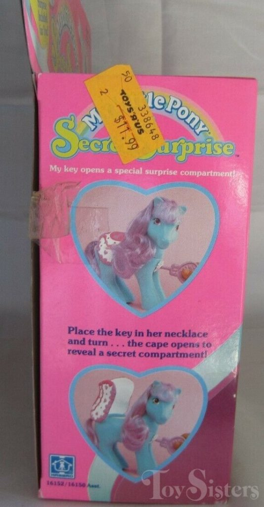 Secret Beauty was released in 1991 and is a Secret Surprise Pony. She came with a purple key, silver ring with pink stone, and a green comb. She is in the Stardazzle Pose. To view other ponies by year/series, click here.