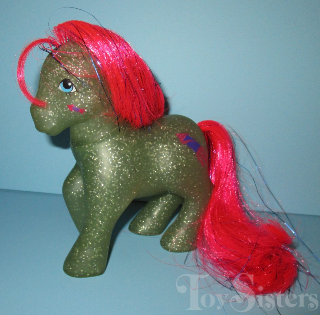 Sky Rocket was also released as a Mail Order pony. The Mail Order version has an additional symbol on her cheek, and can also be found in Pat Pending or non-Pat Pending versions. She came with the same star comb and also a light pink ribbon with a gold trim.