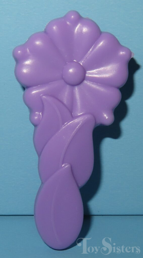 Raspberry Jam was produced in 1988 and is a Sweetberry Pony. Her release in the United States was made in Hong Kong. In Europe, she can be found “Made in China”. That version has no forelock and a brighter pink body. She came with a purple flower brush and a blue ribbon. She is in the Cupcake Pose. To view other ponies by year/series, click here.