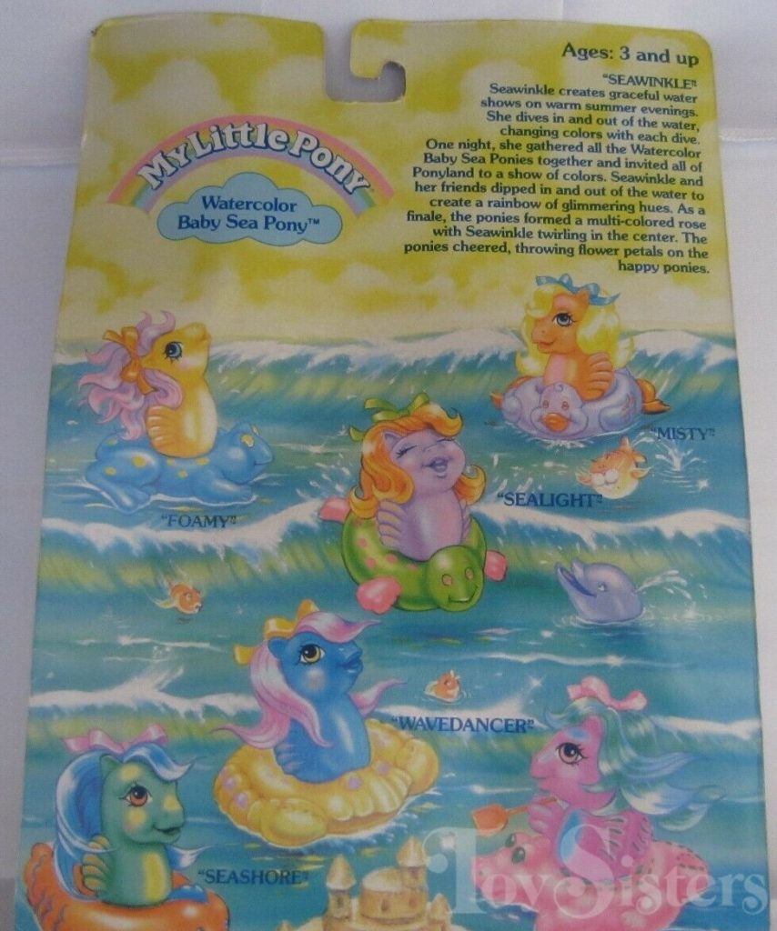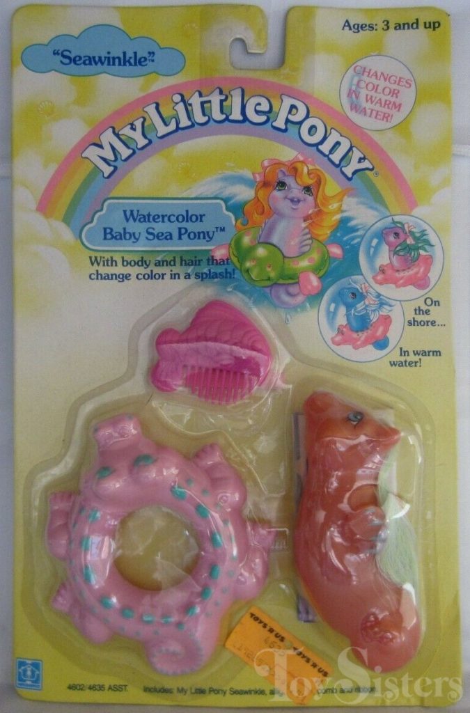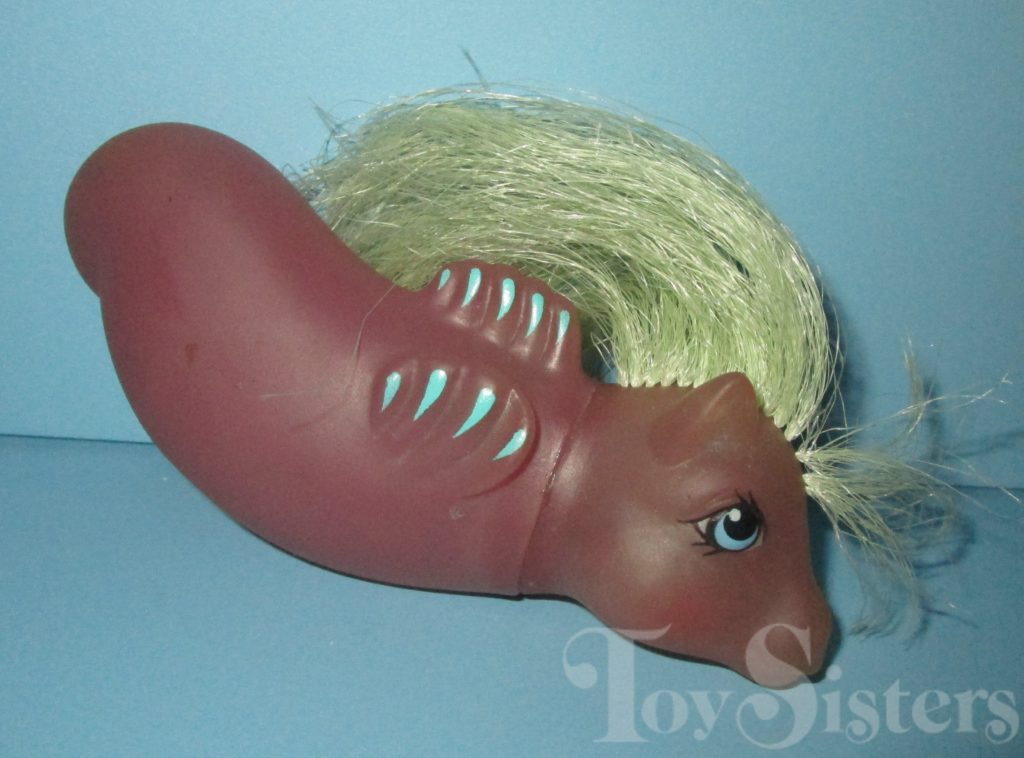 Seawinkle was released in 1988 and is a Baby Sea Pony. She came with a pink alligator float, fish comb, and pink ribbon. She is in the Baby Foamy Pose. To view other ponies by year/series, click here.